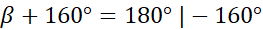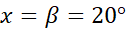 Najpierw wyznacz miarę kąta α, korzystając z sumy katów przyległych. Następnie oblicz kąt β, wiedząc, że w trójkącie suma katów wewnętrznych wynosi 180°. Zauważ, że z kątów wierzchołkowych miara kąta x jest równa kątowi β.