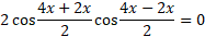 Skorzystaj ze wzoru na sumę cosinusów różnych kątów. Zauważ, że w iloczynie jeden lub drugi czynnik jest równy 0. Sumując przedziały rozwiązań, dochodzimy do wniosku, że odpowiedź