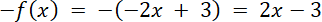 Funkcja liniowa f jest określona wzorem f(x) = - 2x + 3. W tym zadaniu musisz napisać wzór funkcji g, której wykres jest symetryczny do wykresu funkcji f względem osi OX.