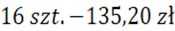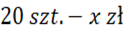 Jako x należy oznaczyć koszt 20 żarówek. Wiedząc, że 16 kosztuje 135,20 zł, wystarczy ułożyć proporcję, ile będzie kosztowało 20 sztuk. Po wymnożeniu „na krzyż” i obustronnym podzieleniu przez czynnik stojący przy x otrzymamy wartość x.