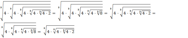 W tym zadaniu ważne jest, aby zacząć od szczegółu – czyli pierwiastka najbardziej zakorzenionego. Wykonaj kolejne działania, ‘odkrywane’ działania.