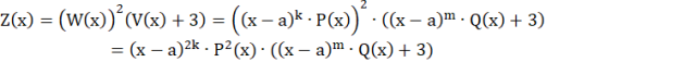 Z postaci iloczynowej otrzymanej po wymnożeniu i podniesieniu do potęgi odpowiednich, danych w treści wielomianów, odczytujesz, że liczba a jest 2 k-krotnym pierwiastkiem wielomianu Z(x), ponieważ Z(a) = 0.