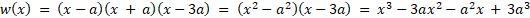 Zapisz wielomian w w postaci iloczynowej, wymnóż go i porównaj wartości przy odpowiednich potęgach aby wyliczyć a, p i q. Na koniec oblicz pozostałe pierwiastki.