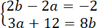 Wstaw parę liczb (2, -3) do układu równań i wylicz wartości liczb a i b.