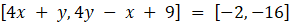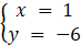 Po rozwiązaniu powyższego dostaniesz x = 1, y = -6.