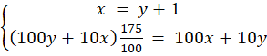 W tym zadaniu musisz zapisać układ równań, który będzie przedstawiał, że cyfrą jedności w pewnej liczbie trzycyfrowej jest 0. Ponadto cyfra setek jest o jeden mniejsza od cyfry dziesiątek. Co więcej, jeżeli zamienimy miejscami cyfrę setek i dziesiątek to otrzymamy liczbę o 75% większą od początkowej.