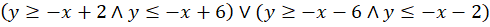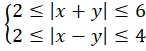 Przekształć nierówności wchodzące w skład układu. Wykorzystaj własność wartości bezwzględnej. Następnie zaznacz część wspólną półpłaszczyzn wyznaczanych przez składowe nierówności układu.