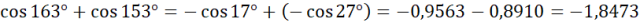 Zamień ze wzorów redukcyjnych kąty z drugiej ćwiartki na te z pierwszej i przy pomocy tablic odczytaj wartość tych cosinusów.