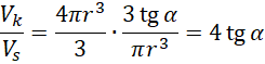 Zauważ, że tangens kąta alfa to iloraz promienia stożka do jego wysokości.