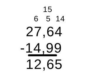 Zapisz, jak wyglądały kolejne działania Kasi, by móc obliczyć początkową liczbę. Liczbę Kasi oznacz jako niewiadomą x. Wykonując odejmowanie pisemne najpierw, należy odjąć cyfry w słupku najbardziej z prawej. Jeśli nie można odjąć cyfr, ponieważ odjemnik jest większy od odjemnej, to należy pożyczyć jedną dziesiątkę ze słupka z lewej strony. Wtedy odjemna w słupku, w którym wykonujemy odejmowanie stanie się o dziesięć większa, a odjemna w kolejnym na lewo słupku zmaleje o jeden. W taki sam sposób należy odejmować każdy kolejny słupek, zaczynając od prawej i idąc do lewej. Pamiętaj, że przecinek wyniku będzie znajdował się pod przecinkami liczb, jakie odejmujesz.