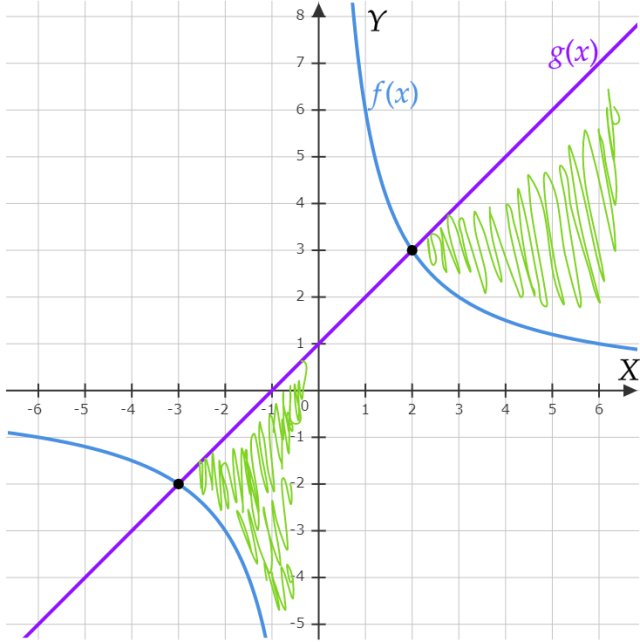 Na początku, oznacz obie strony nierówności jako funkcje. Graficznym rozwiązaniem nierówności