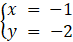 Po rozwiązaniu powyższego dostaniesz x = -1, y = -2.