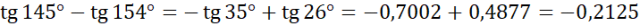 Zamień ze wzorów redukcyjnych kąty z drugiej ćwiartki na te z pierwszej i przy pomocy tablic odczytaj wartość tych tangensów.