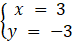 Po rozwiązaniu powyższego dostaniesz x = 3, y = -3.