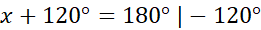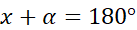 Najpierw oblicz kąt α, wiedząc, że w trójkącie suma katów wewnętrznych wynosi 180°. Następnie wyznacz miarę kąta x, korzystając z sumy katów przyległych.