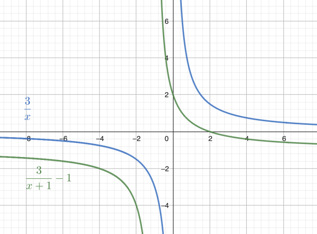 Zauważ, że wykres funkcji f jest przesunięciem wykresu o jedną jednostkę w lewo i jedną jednostkę w dół.