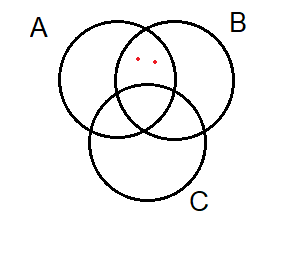 Narysuj na diagramie dwa elementy w taki sposób, by zbiory A, B, C miały odpowiednio 2, 2 i 0 elementów.