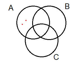 Narysuj na diagramie dwa elementy w taki sposób, by zbiory A, B, C miały odpowiednio 2, 0 i 0 elementów.