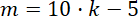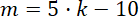 B. Aby obliczyć pewną liczbę m, pomnóż liczbę k przez 10 i odejmij 5 od otrzymanego iloczynu.