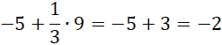 Pierwsza z liczb będzie leżała między 4 i -5. Policz różnicę tych liczb. Odległości szukanej liczby od -5 i 4 muszą być w stosunku 1 : 2, więc znajduje się ona w