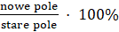Najpierw oblicz pole powierzchni przed wydłużeniem boków. Następnie oblicz, jak będzie wyglądał każdy z boków po wydłużeniu ich i oblicz pole po tej operacji. Następnie oblicz, jaki procent starego pola, zajmuje nowe pole (