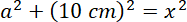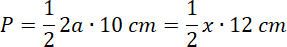 W trójkącie równoramiennym wysokość opuszczona na podstawę ma długość 10 cm, a opuszczona na ramię – 12 cm. Oznacz długość ramienia jako x, a długość podstawy jako 2a. Wysokość opada w połowie podstawy, możesz więc ułożyć twierdzenie Pitagorasa: