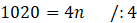Zauważ, że kolejne liczby czterocyfrowe podzielne przez 4 mniejsze od 2020 tworzą ciąg arytmetyczny, w którym: