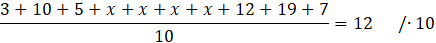 Skorzystaj ze wzoru na średnią arytmetyczną dziesięciu liczb. Z treści zadania wiesz, że wynosi ona 12.