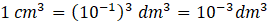 Zmieńmy jednostki objętości wody z centymetrów sześciennych na litry: