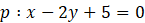 z prostą p: x - 2y + 5 = 0. Natomiast punkty C i D oraz E i F są wyznaczone przez punkty wspólne okręgu z prostymi równoległymi do prostej p, oddalonych od niej o