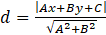 Odległość prostych równoległych do prostej p od środka okręgu: