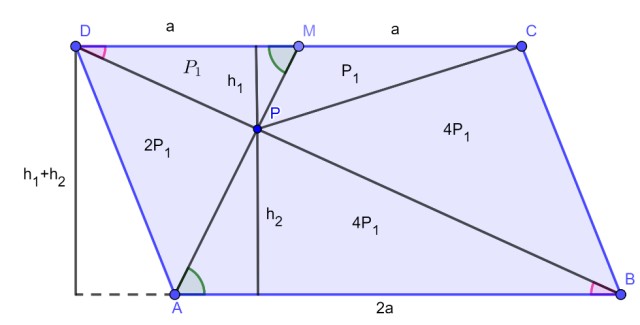 Przekątna DB przecina odcinek AM w punkcie P