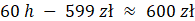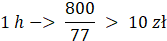 Cenę za godzinę możesz policzyć dzieląc cenę przez liczbę godzin: