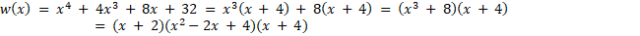 Zauważ, że wielomian w(t) to tak naprawdę w(-x), więc podstaw do rozkładu wielomianu w(x) -x zamiast x.