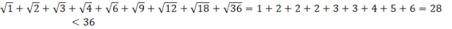 W tym zadaniu musisz znaleźć wszystkie dzielniki 36. Następnie musisz oszacować wartość sumy ich pierwiastków i pokazać, że jest ona mniejsza od 36.