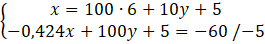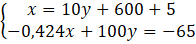 -0,424(10y + 605) + 100y = -65