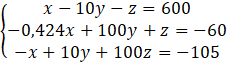 x – 10y – z – x + 10y + 100z = 600 - 105