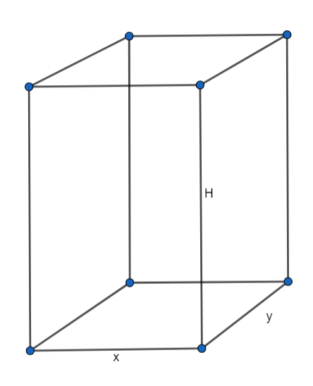 W tym przypadku objętość graniastosłupa to V = x ∙ y ∙ H