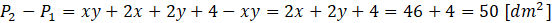 Obwód obrazu o wymiarach x dm x y dm to 46 dm. Otaczająca go ramka ma szerokość 1 dm. O ile decymetrów kwadratowych powierzchnia obrazu wraz z ramą jest większa od powierzchni obrazu bez ramki?