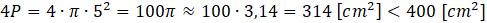 Sprawdź, czy z kwadratowej kartki papieru o boku długości 20 cm można wyciąć cztery koła, których suma obwodów przekroczy 120 cm.