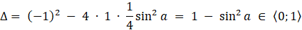 Rozważmy deltę oraz postaci pierwiastków tego równania kwadratowego: