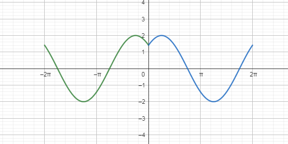 Szukane argumenty, dla których funkcja będzie przyjmować wartość 2 lub -2, możesz odczytać z wykresu albo wyznaczyć je, rozwiązując dwa równania: