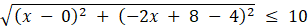 W tym zadaniu musisz znaleźć punkty, które znajdują się na opisanej prostej i leżą w odległości nie większej niż 10 od punktu P.