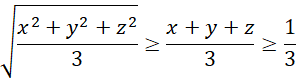 W tym zadaniu korzystasz z relacji pomiędzy średnią kwadratową a arytmetyczną trzech liczb: