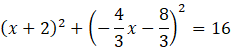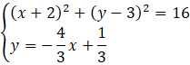 Współrzędne punktu 𝐺 to współrzędne jednego z punktów wspólnych prostej prostopadłej i okręgu z treści zadania. Ułóż i rozwiąż odpowiedni układ równań.