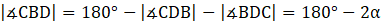 Zauważ, że trójkąt BDC jest równoramienny, więc:
