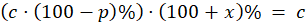 Niech c będzie starą ceną produktu, a x szukaną liczbą %. Cena po obniżce: