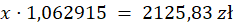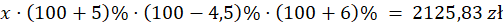 Pan Antoni zainwestował pewną kwotę na giełdzie. W kolejnych latach stan jego rachunku: powiększył się o 5%, zmniejszył o 4,5%, zwiększył o 6%. Po trzech latach miał 2125,83 zł. Jaką kwotę zainwestował na początku?