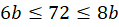 Zapisz, do jakiego przedziału należy a (krótszy bok) oraz równanie wynikające z pola prostokąta: ab = 72. Zamień przedział, do którego należy a, na nierówność i przemnóż ją razy b. Następnie podstaw ab = 72 w środkowym wyrażeniu w nierówności i rozbij nierówność na dwie. Z każdej wyznacz b. Zapisz uzyskane rezultaty jako przedział.