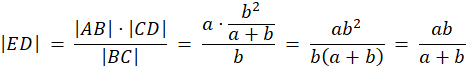 Skorzystaj z twierdzenie o dwusiecznej, aby wyznaczyć stosunek odpowiednich odcinków. Następnie zauważ, że skoro szukany odcinek jest równoległy do podstawy trójkąta ABC, to na mocy cechy kkk trójkąty CED i CAB są podobne. Ze stosunku odpowiadających sobie boków wyznacz długość odcinka DE. W kolejnym kroku podstaw dane dla tych dwóch konkretnych trójkątów.